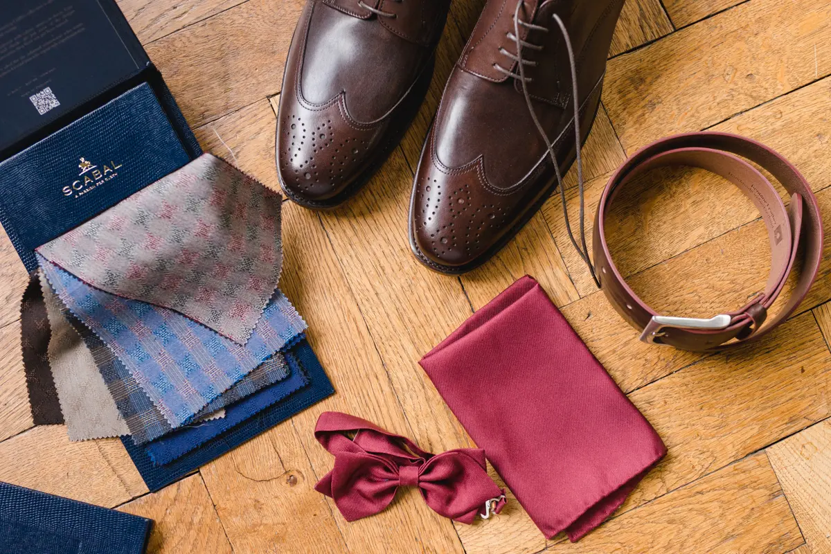 Am Ende geht es bei den Accessoires nicht nur um Mode, sondern um Persönlichkeit. Der Hochzeitstag ist ein einmaliger Moment im Leben – und der Bräutigam soll sich darin authentisch und wohl fühlen. Genau deshalb legen wir als Herren-Massschneider grossen Wert darauf, jeden Bräutigam individuell zu begleiten. Vom Anzug über das Hemd bis zu den passenden Accessoires wird jedes Detail sorgfältig ausgewählt. Alle Bestandteile entstehen als Einzelanfertigungen, werden in Europa gefertigt und können vom Bräutigam nach seinen Vorstellungen zusammengestellt werden.