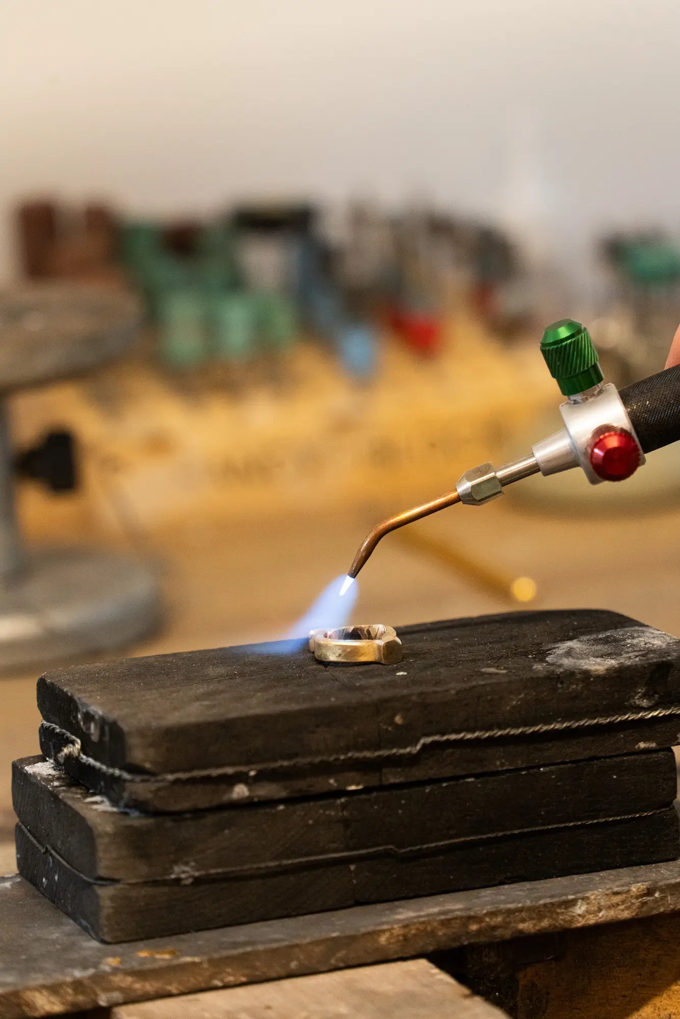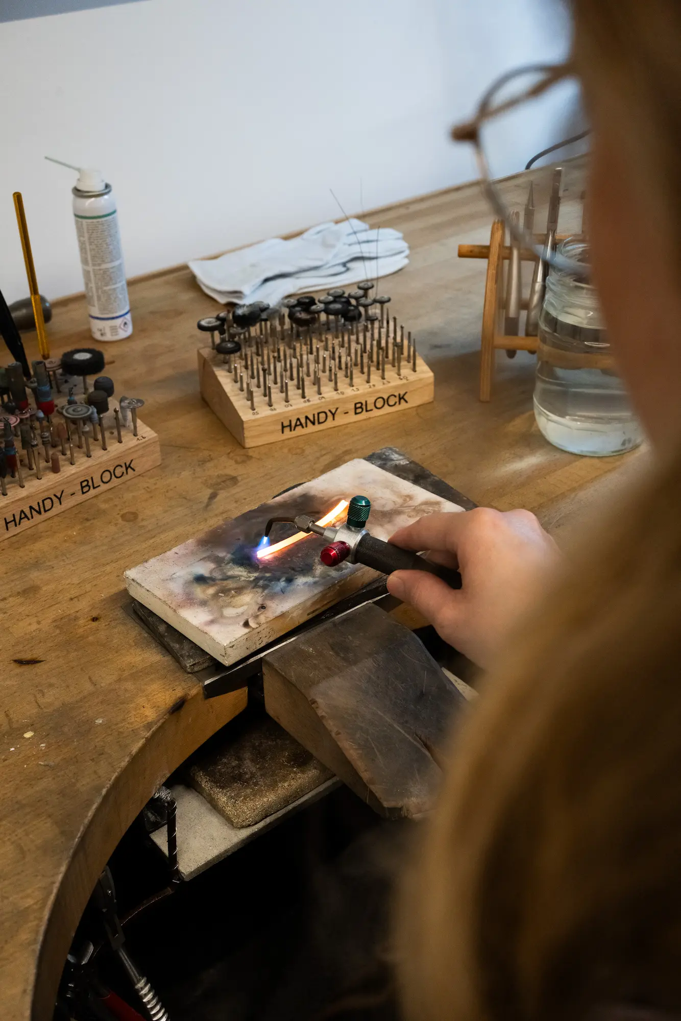Sobald euer Plan steht, geht es im nächsten Schritt dann ans Eingemachte: Der Workshop-Tag steht an. Zusammen mit einem Goldschmied oder einer Goldschmiedin werdet ihr im Atelier einen ganzen Tag professionell begleitet. Der Ablauf führt euch vom Rohmaterial (Rotgold, Roségold, Platin, etc.) bis zum fertigen Ring.